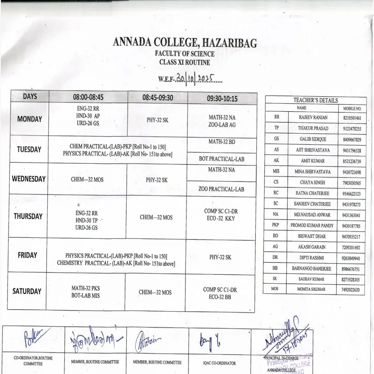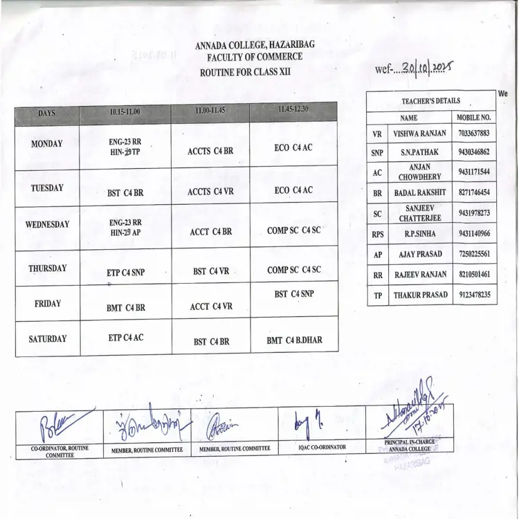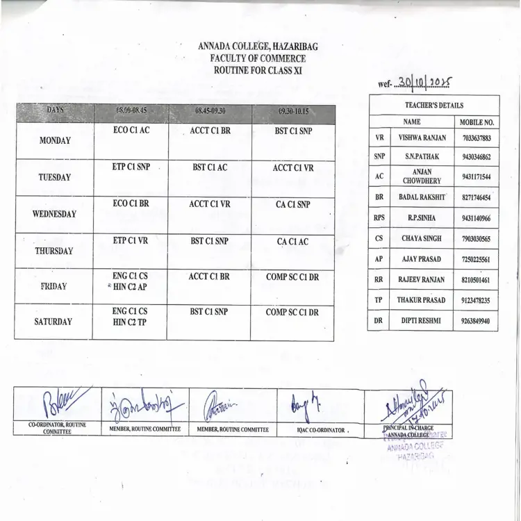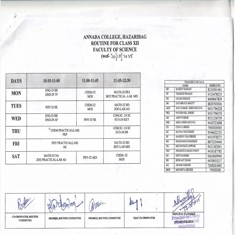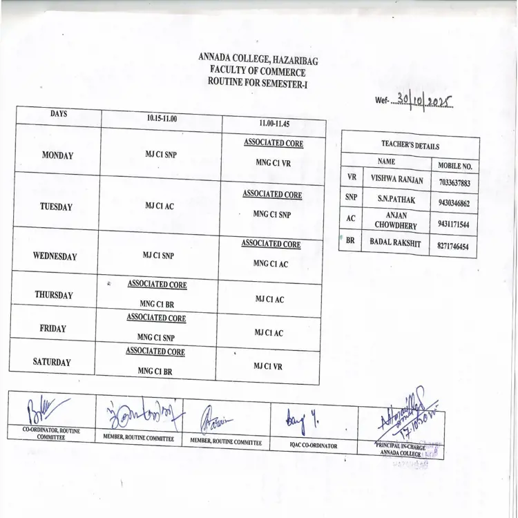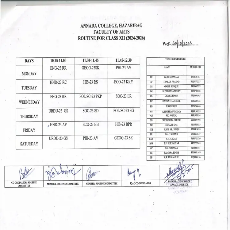Dr. Nilmani Mukherjee,Principal, Annada College, Hazaribag