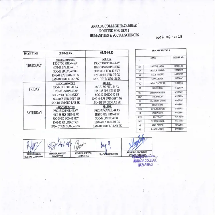 SPECIAL ROUTINE FOR HUMANITIES AND SOCIAL SCIENCES SEMESTER - VI (W.E.F - 25-08-2025)