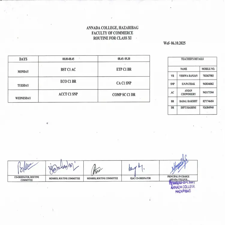 FACULTY OF COMMERCE SPECIAL ROUTINE FOR CLASS XI (W.E.F - 06-10-2025)