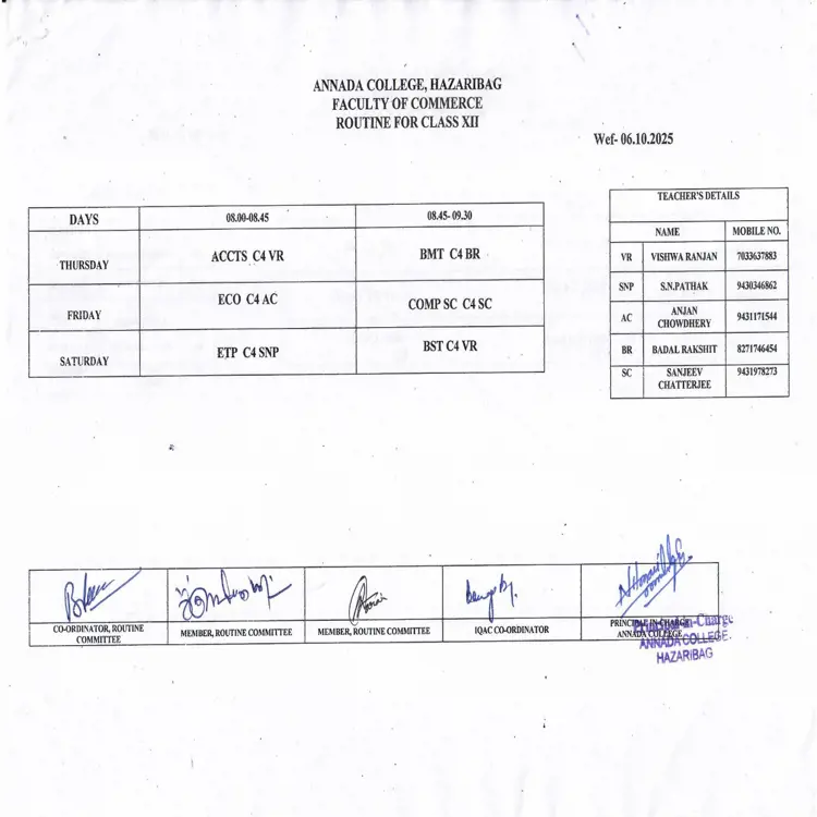 FACULTY OF COMMERCE SPECIAL ROUTINE FOR CLASS XII (W.E.F - 06-10-2025)