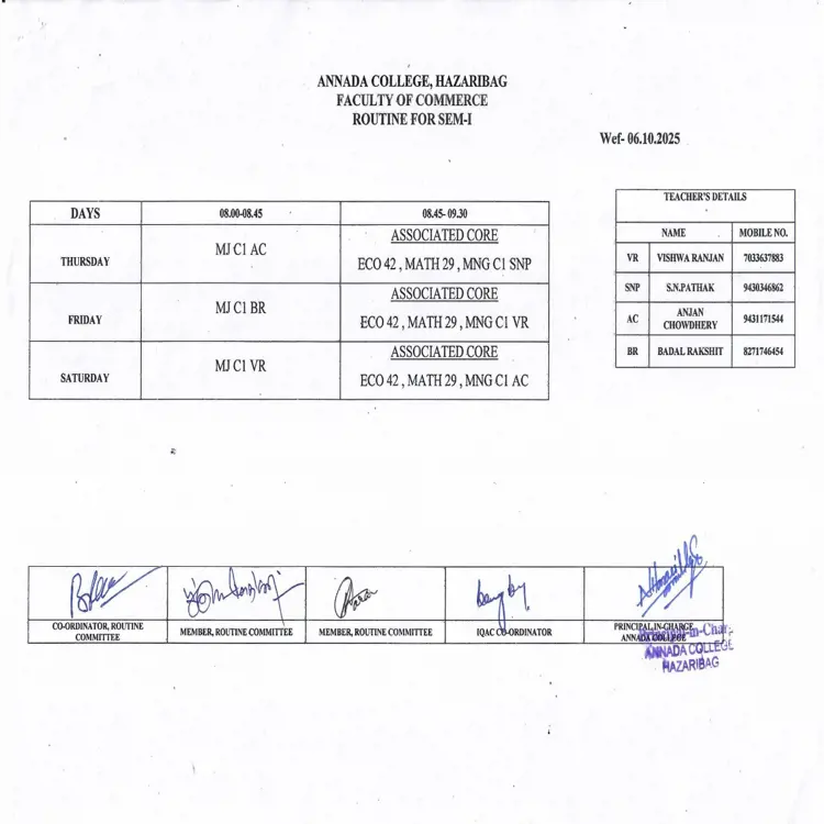 FACULTY OF COMMERCE ROUTINE FOR SEM I (W.E.F - 11-08-2025)