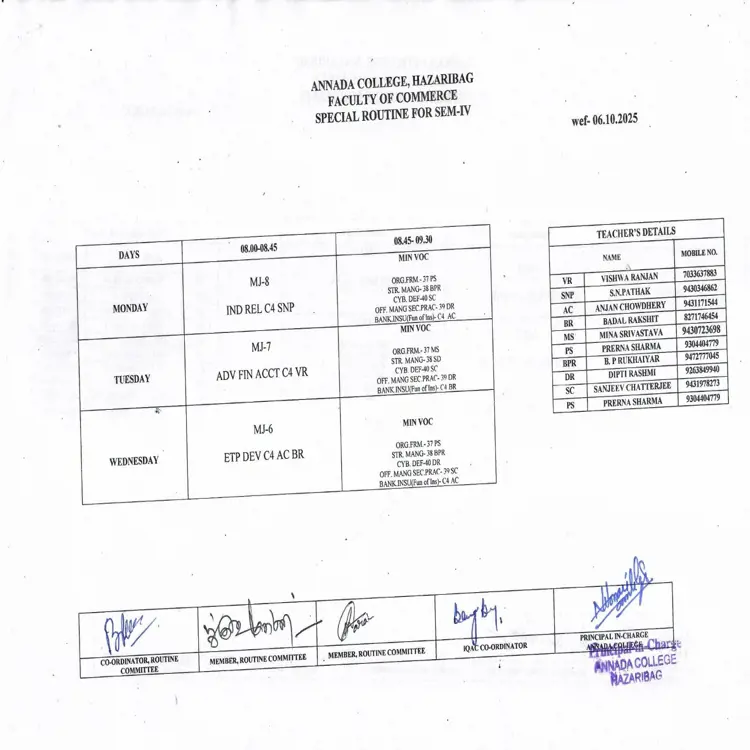 FACULTY OF COMMERCE SPECIAL ROUTINE FOR SEMESTER IV (W.E.F - 06-10-2025)