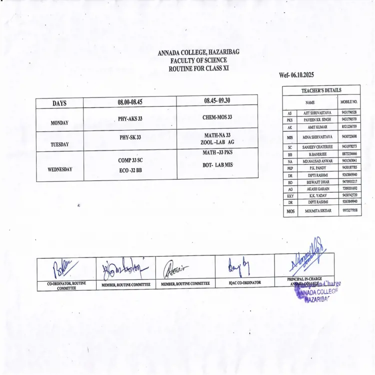 FACULTY OF SCIENCE SPECIAL ROUTINE FOR CLASS XI (W.E.F - 06-10-2025)
