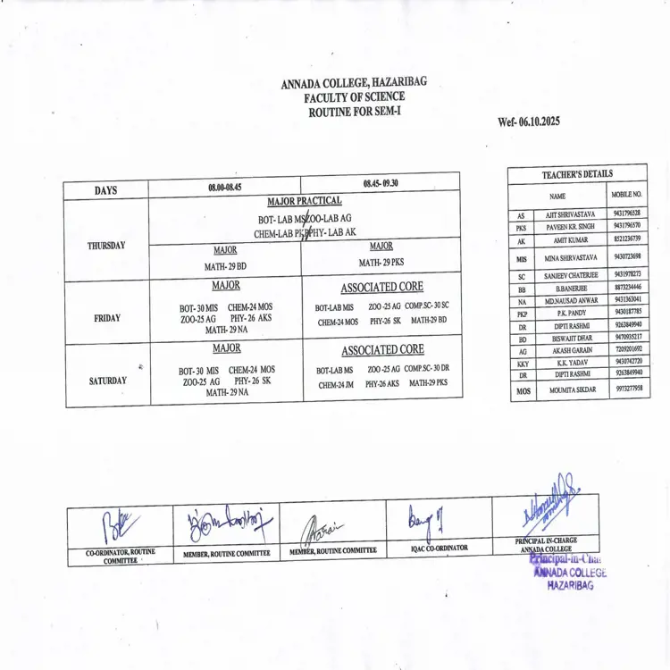 FACULTY OF SCIENCE SPECIAL ROUTINE FOR SEMESTER I (W.E.F - 06-10-2025)