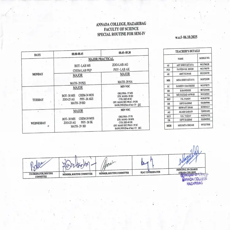 FACULTY OF SCIENCE SPECIAL ROUTINE FOR SEMESTER IV (W.E.F - 06-10-2025)